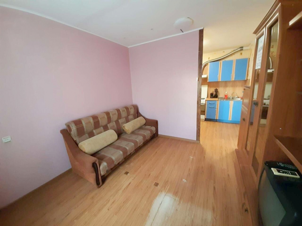 Площади 33,5/20/5 кв м, комнаты смежные, с/у совмещен, продается с мебелью, техникой.