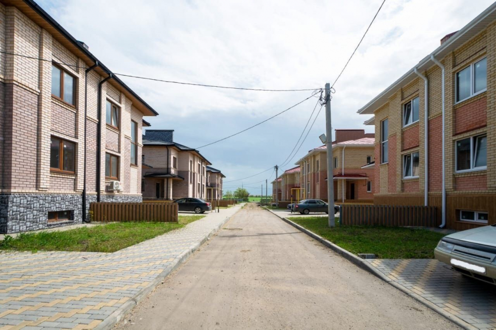 Таунхаус, площади 192/56,9/30,9 кв м., 2 этажа, 4 комнаты, теплый пол, ценральный водопровод, газовый котел отопления, двор - плитка, под отделку.